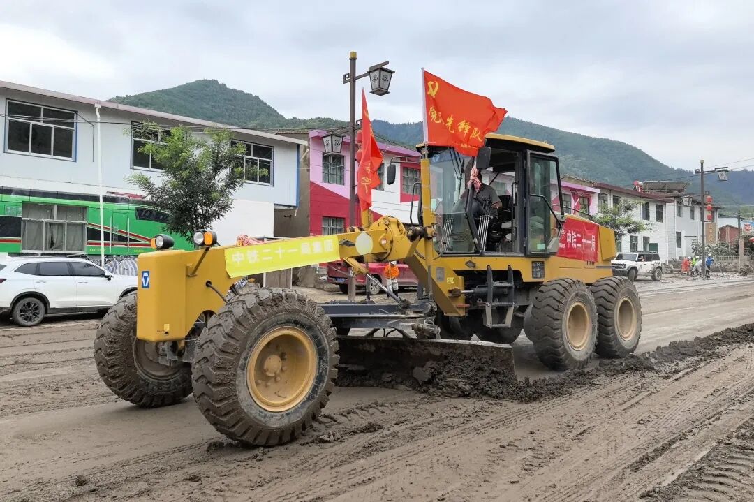 急行再急行,挺进再挺进。挖掘机、装载机等重型工程机械有序作业,清理废墟、开辟通道……在为期7天的抢险中,抢险救援队完成道路清淤15.34公里,杂物清理7240立方米,返修沥青路面2100平方米,疏浚河道和排洪渠8960米,整修河道及河坝5.6公里,高效完成抢险任务。