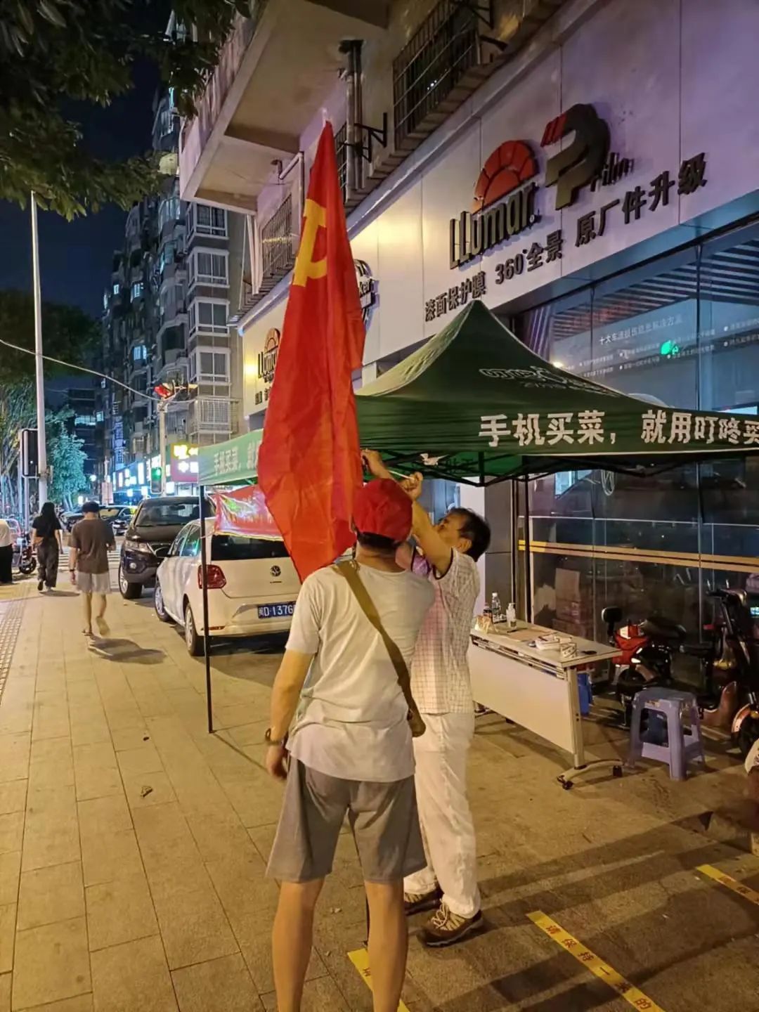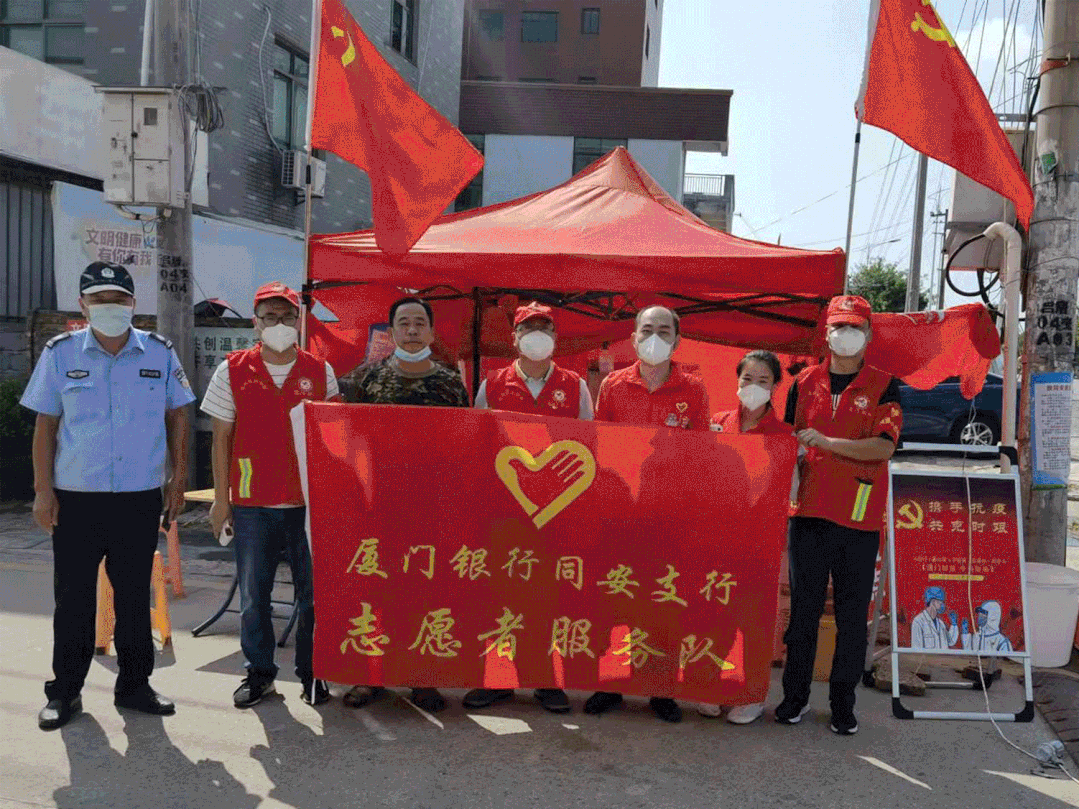 一面党旗,一份担当。厦门银行的党员、团员带头走进无物业管理小区,协助社区开展小区进出居民的体温测量、健康码和通行证检查等工作。当晚,该小区一位老党员特别为检测点送来一面党旗,并对志愿者的行动表示感谢。