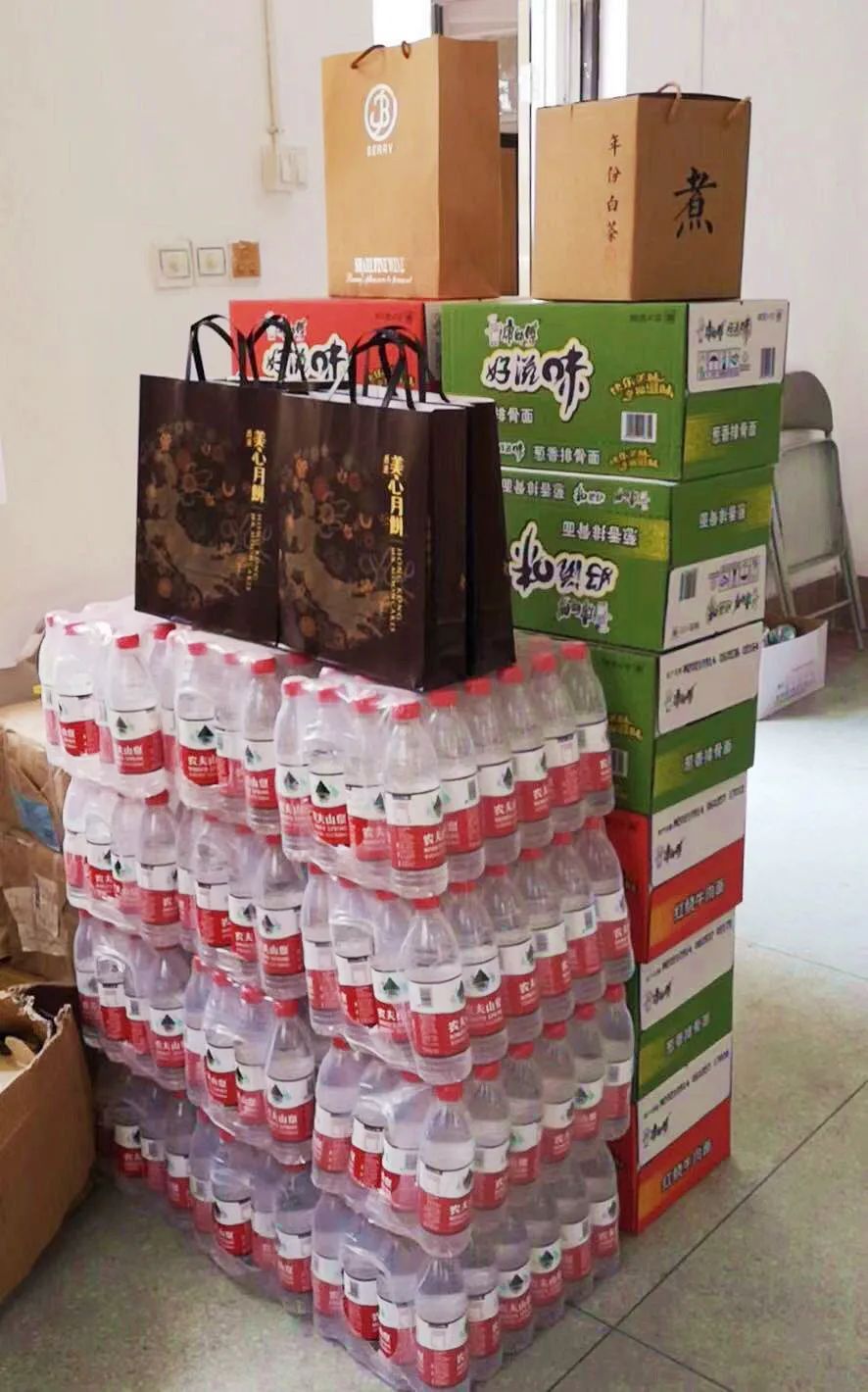 因同安区对全区道路实行机动车管制,社区物资保障遭受挑战。厦门银行的志愿者们用车推、用手搬,打通社区供给的“最后一公里”。接连几天的奋战,虽然志愿者们吃着泡面,但看到社区的工作人员在收到送来的物资和月饼时露出的笑容,志愿者们的内心也甘之如饴。