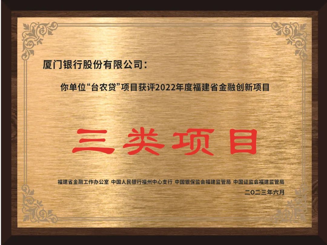 引人瞩目的是,6月18日,福建省金融工作办公室公布了“2022年度福建省金融创新项目”名单,该行推出的“台农贷”项目荣获“2022年度福建省金融创新项目”殊荣,这已是该行第二次获此殊荣。