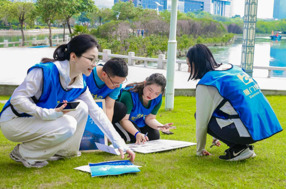 本次筼筜湖畔趣味生态跑围绕筼筜湖畔设置关卡,通过手速拼图、团队打卡、寻宝答题等趣味环节,关联生态实践与绿色知识普及。通过团队的通力协作,进一步加深总分机构团干之间的交流和互动,展现团干们的青春活力。