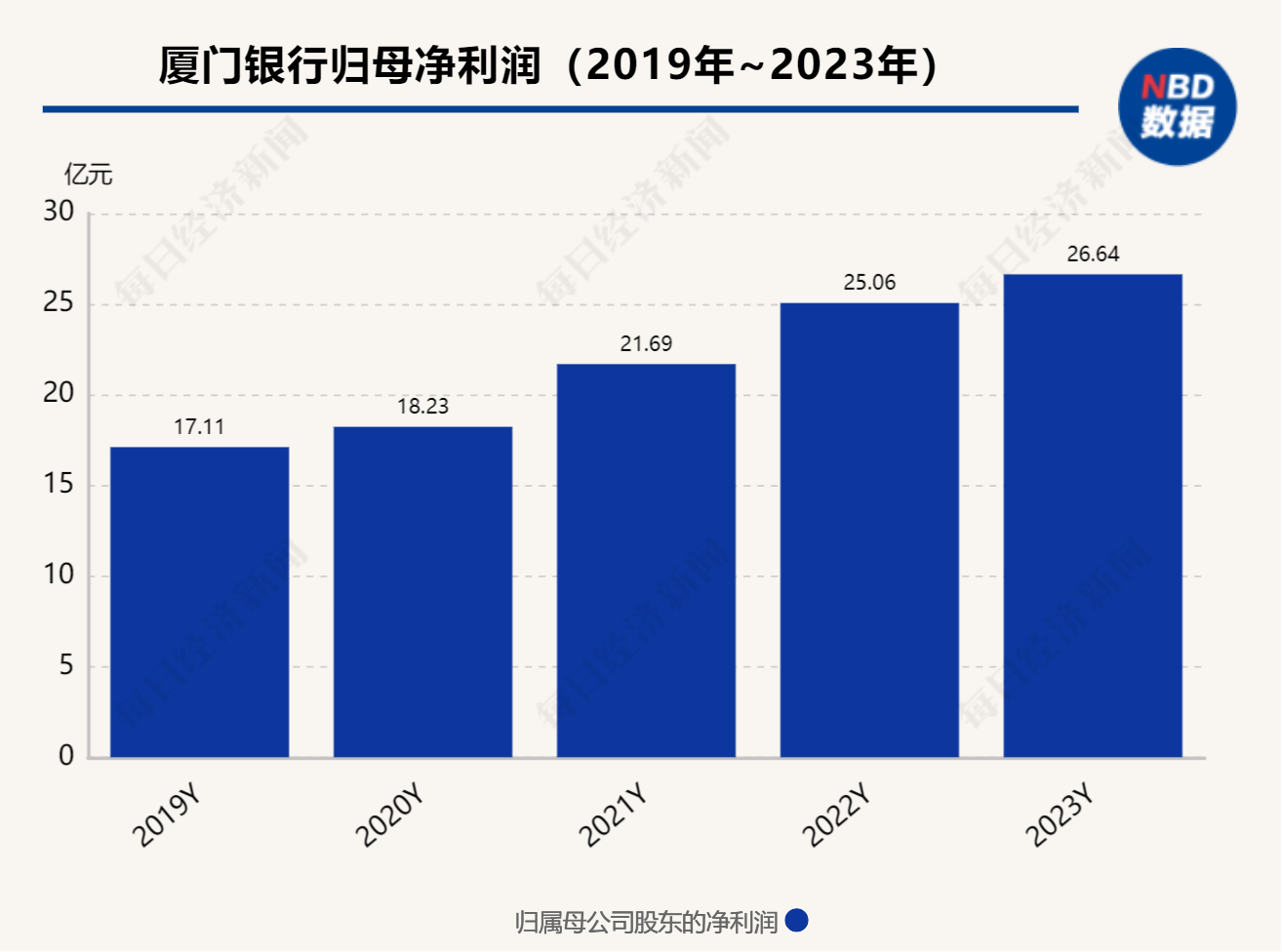 财报显示,2023年厦门银行实现归属于母公司股东的净利润26.64亿元,同比增长6.3%。从股东回报来看,该行现金分红率连续三年超过30%。根据该行公布的2023年利润分配方案,拟按每10股派发现金股利3.10元人民币(含税),合计约8.18亿元,现金分红比例为30.71%。