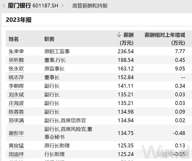 他既是厦门银行任职最长的副行长,即便如此也是最年轻的副行长。根据年报披露,2023年他的薪酬为141万元,略有增加,在高层中排列第五;他还持有大约2.2万股股份。