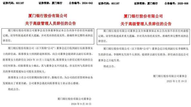 厦门银行高层人事变动频繁,副行长李朝晖离职引关注