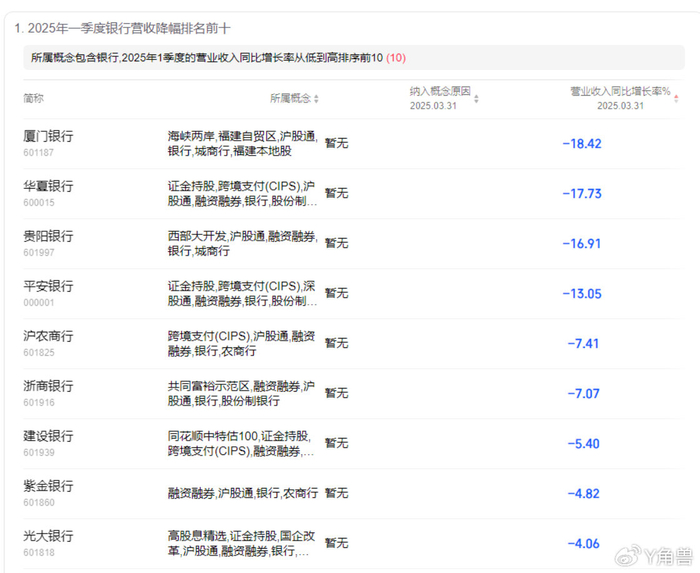 根据同花顺当时的统计,厦门银行在营收降幅最大的10家银行中,排名第一位。