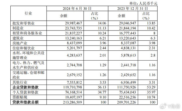 如果将时间向前推一年,可以发现租赁和商务服务业、制造业以及电力、热力、燃气及水生产和供应业是当年厦门银行新增贷款的主要投放方向。尤其是租赁和商务服务业,在2024年的前6月就增长了50.6亿元。而整个厦门银行同期新增贷款的总金额一共就只有50.6亿元。