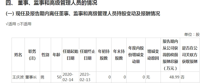 公告称,公司董事会于2022年10月12日收到公司董事长王庆波的书面辞职报告。王庆波先生因工作变动原因,申请辞去公司董事长、董事及董事会战略委员会主任委员等职务,辞职后不再担任公司任何职务。