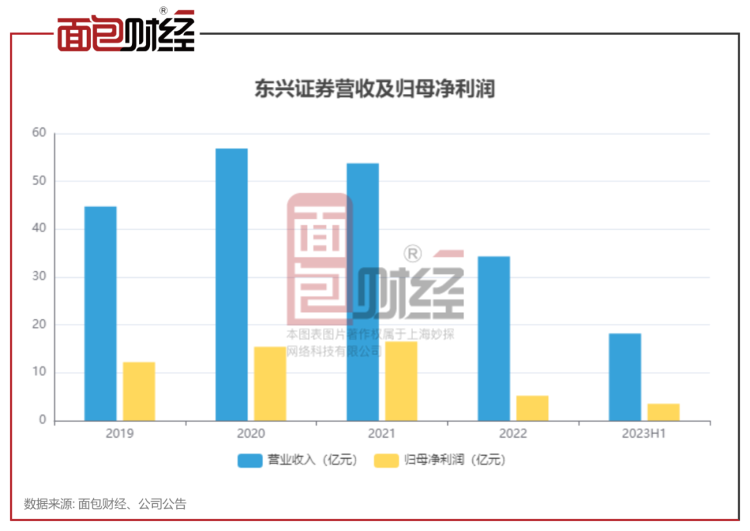 需注意的是,今年上半年东兴证券利息净收入、手续费及佣金净收入均较上年同期有所下降。2023年上半年,东兴证券利息净收入5.44亿元,较上年同期减少0.98亿元,同比下降15.23%;手续费及佣金净收入6.49亿元,较上年同期减少4.15亿元,同比下降39.01%。