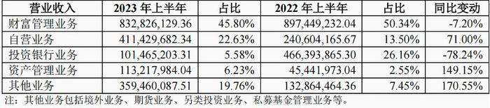 今年上半年,东兴证券收入最高的业务板块是财富管理业务,实现营业收入8.33亿元,同比下降7.2%,占公司营业收入的比重为45.8%,较上年同期下降4.54个百分点。