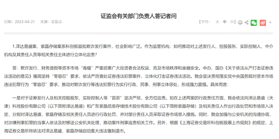 因此,泽达易盛和紫晶存储也成为了“科创板首批欺诈发行案件”的案例。