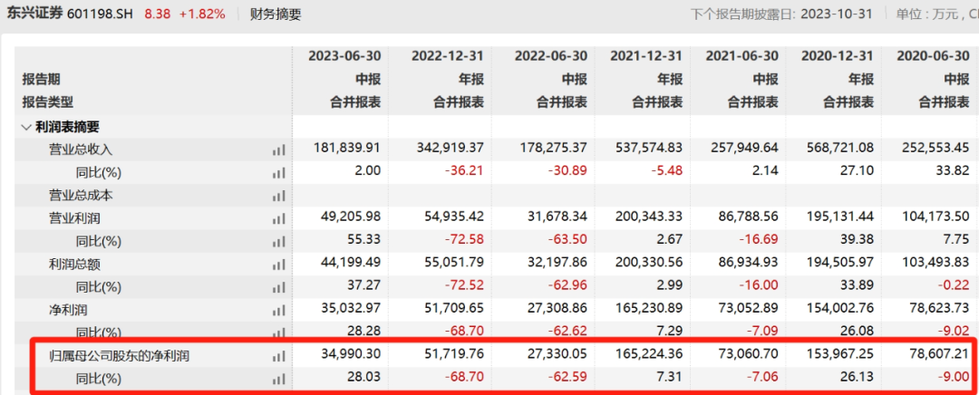 东兴证券半年报显示,营收及利润全面回暖,归母净利润同比上升28%。