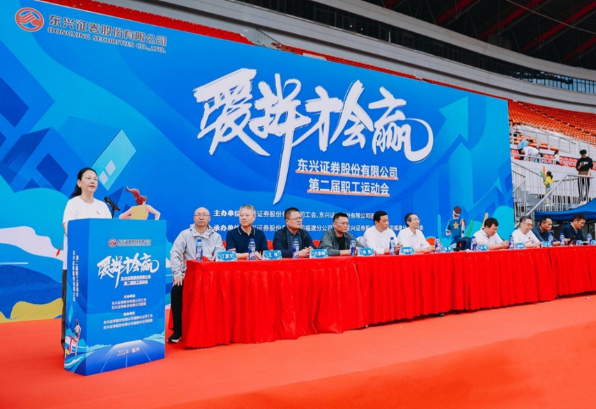 为丰富文体生活,增强身体素质,提高福建地区团队凝聚力、战斗力,11月9日,东兴证券在福州举办“爱拼才会赢”第二届职工运动会,来自福建省内29家分公司及营业部的700余名员工和家属参加了运动会,公司党委书记、董事长李娟为运动会致开幕辞,并宣布运动会开幕。