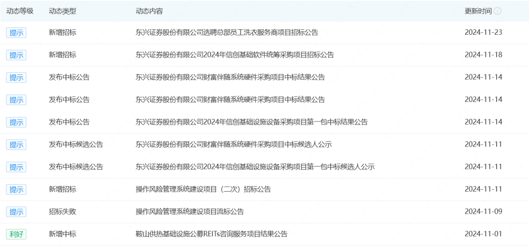 出于好奇,行家翻了翻东兴证券最近一年的招标信息。
