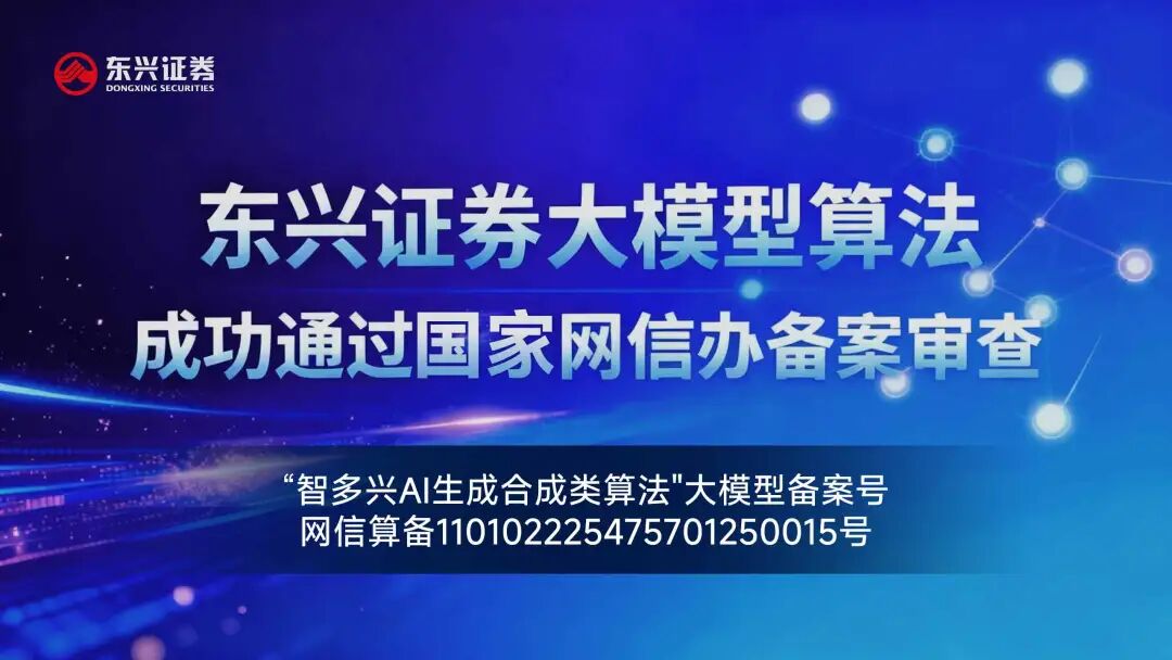 近日,东兴证券生成式人工智能大模型——智多兴AI生成合成类算法,正式通过国家网信办的全面审查,成功获得生成式人工智能服务备案认证。该模型在安全性、内容合规性、隐私保护机制以及技术能力等多个维度均已符合国家相关法律法规与监管要求,取得面向公众提供服务的权威准入资格。
