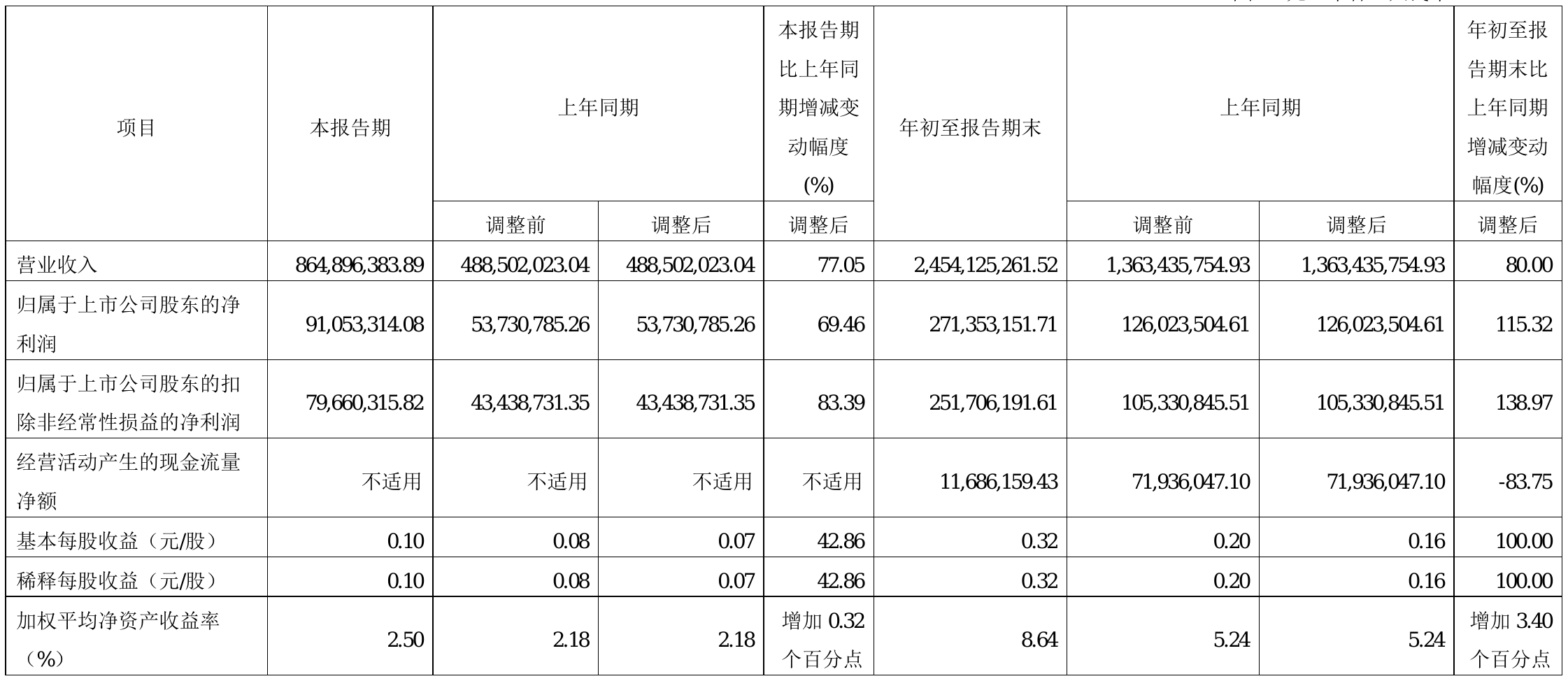 挖贝网10月18日,东材科技(601208)近日发布2021年三季度报告,报告期内营业收入864,896,383.89元,同比增加77.05%;净利91,053,314.08元,同比净利增加69.46%。
