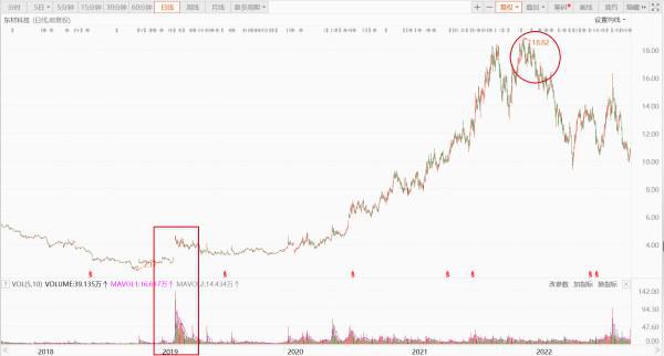 不断扩大投资,增加经营规模,无疑东材科技获得了营业收入和净利润的迅速增长。其股价也随着经营业绩的增长在2019年至2021年之间出现了一轮持续上涨的行情。根据前复权股价,2019年年初东材科技股价不足3元,到2021年年底最高涨至18.82元,区间涨幅逾5倍。