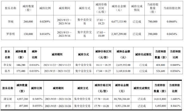 值得注意的是,上述六位在2021年减持股份过程中,他们的减持价格区间均在17元以上,最高价为董事长唐安斌减持价格区间的上限18.41元,减持股份均恰好在股价的高位,合计套现1.10亿元。