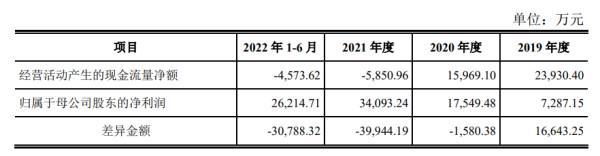 实际上,2021年度也出现了和上述相似的情况。2021年度东材科技的归母净利润为3.41亿元,但经营活动产生的现金流量净额为-5850.96万元,一正一负,相差近4亿元。近一年半以来,其经营活动的现金流量均呈净流出状态,合计净流出1.04亿元。与之相反,2019年和2020年两个年度的经营活动产生的现金流量净额均为正数。