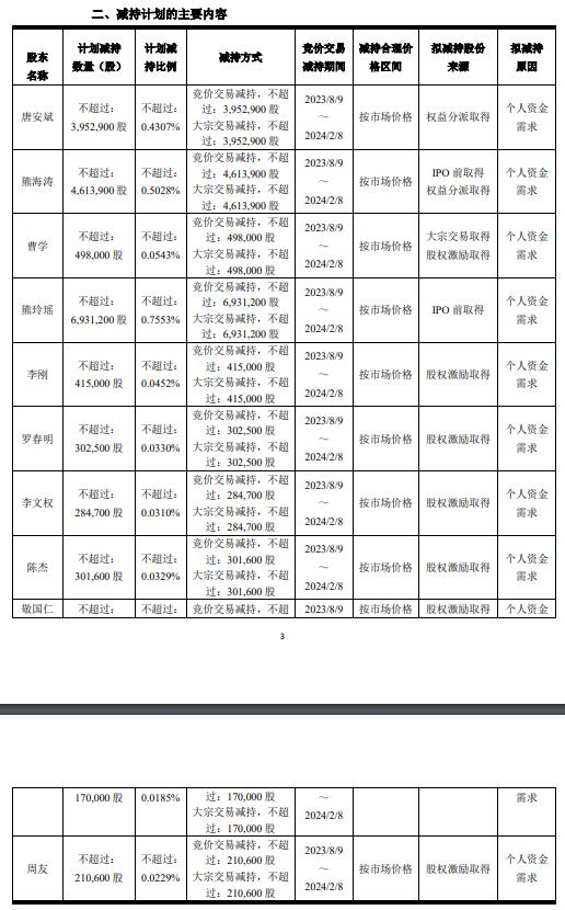 昨晚,东材科技(601208.SH)发布关于董事、高级管理人员减持股份计划公告。东材科技公告称,因个人资金需求,董事长唐安斌、副董事长熊海涛、董事曹学、董事熊玲瑶、总经理李刚、副总经理罗春明、副总经理李文权、董事会秘书陈杰、副总经理敬国仁、副总经理周友计划自本减持计划公告披露之日起15个交易日后的6个月内(窗口期不得减持股份),拟通过集中竞价交易方式、大宗交易方式减持其所持有的公司股份,上述减持主体拟减持的股份数量合计不超过17,680,400股,占公司当前总股本的1.9266%。