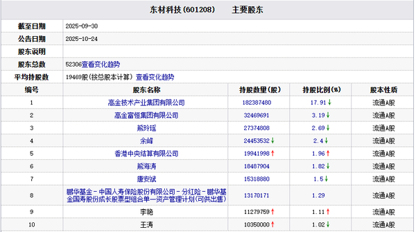 图东材科技主要股东