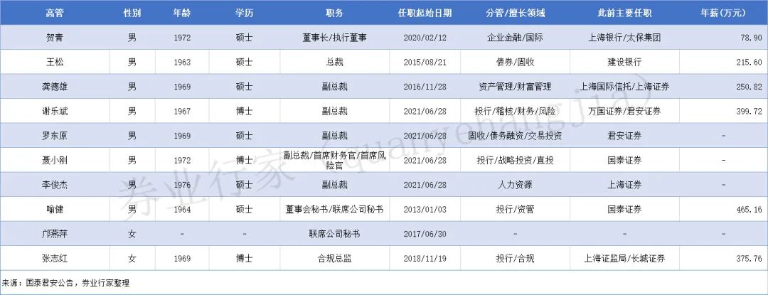 应读者留言要求,行家查证了国泰君安的高管信息。
