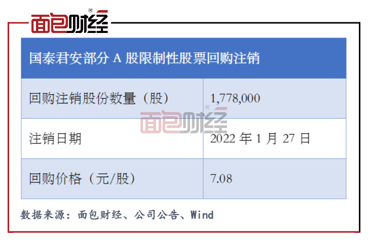 1月25日,国泰君安发布关于部分 A 股限制性股票回购注销实施公告,公司将于1月27日注销股份177.8万股,回购价格为7.08元/股。本次回购注销 A 股限制性股票涉及因与公司解除劳动关系而不再具备激励对象资格的共计11 名激励对象。公司用于本次回购的资金总额为12,588,240元,资金来源为自有资金。