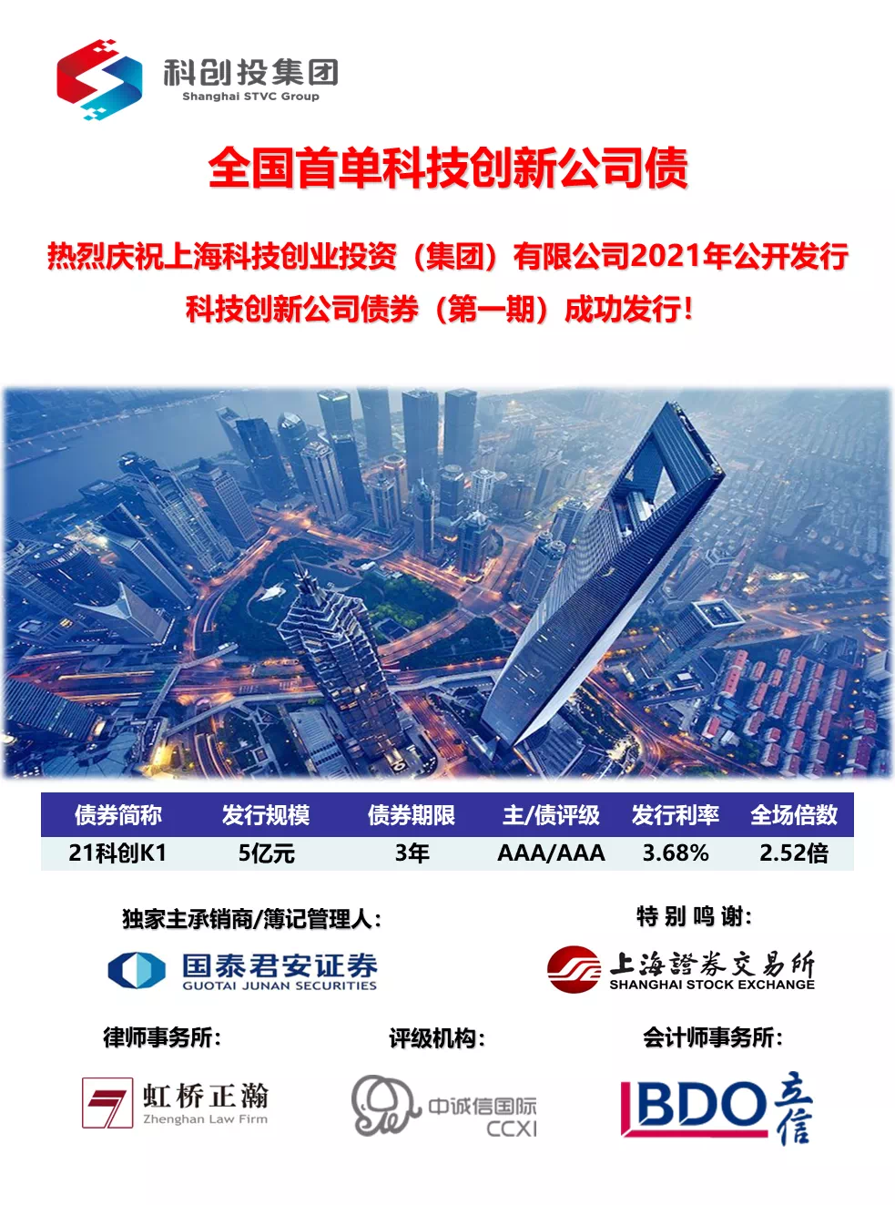 党的十九届五中全会提出,坚持创新在我国现代化建设全局中的核心地位,把科技自立自强作为国家发展战略支撑。国泰君安积极响应国家号召,在2021年,承销创新创业公司债券58.50亿元,位居市场第一。其中,独家主承销上海科技创业投资(集团)有限公司2021年公开发行科技创新公司债券(第一期),系全国首单科技创新公司债券。同时,承销中国诚通控股集团有限公司、上海国有资产经营有限公司等9家发行主体12期创新创业公司债券,充分实践金融服务实体经济的根本职责。