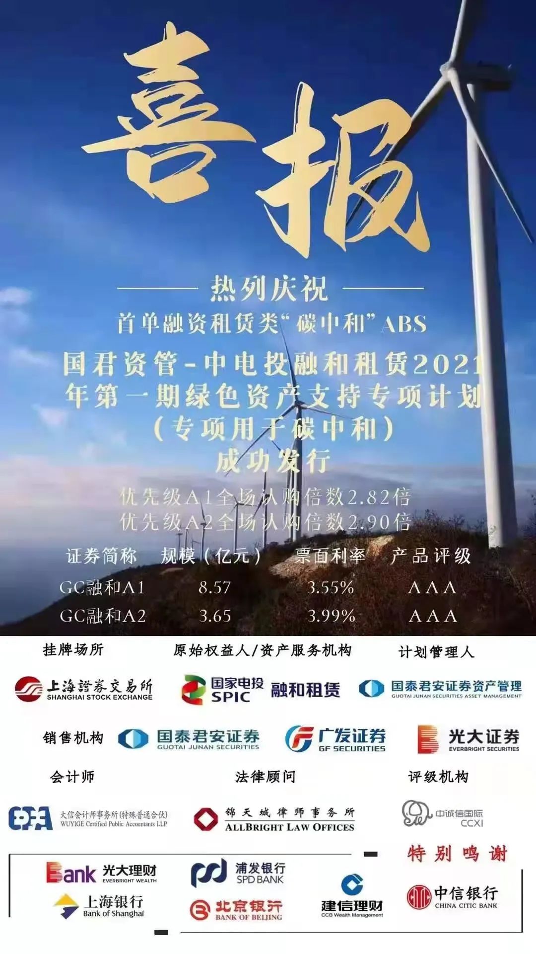 实现碳达峰、碳中和的战略目标,是构建人类命运共同体重要思想的伟大实践,也是金融服务的革命。国泰君安不断提升绿色低碳金融服务能级,打造一流绿色现代投资银行,2021年承销完成绿色公司债券以及管理资产证券化产品合计101.81亿元,位居市场前列。其中,牵头主承销南京江北新区科技投资集团有限公司2021年非公开发行第一期绿色科技创新公司债券(专项用于碳中和),系全国首单碳中和绿色科技创新债券,承销国君资管—中电投融和租赁2021年第一期绿色资产支持专项计划(专项用于碳中和),系全国首单碳中和融资租赁类证券化产品。