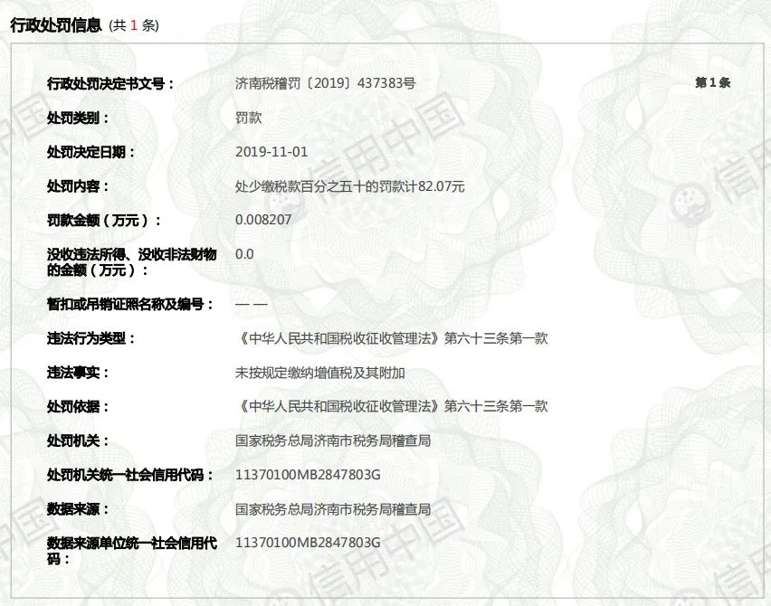 通过信用中国查询,行家发现了几条颇为“扎眼”的的行政处罚信息。