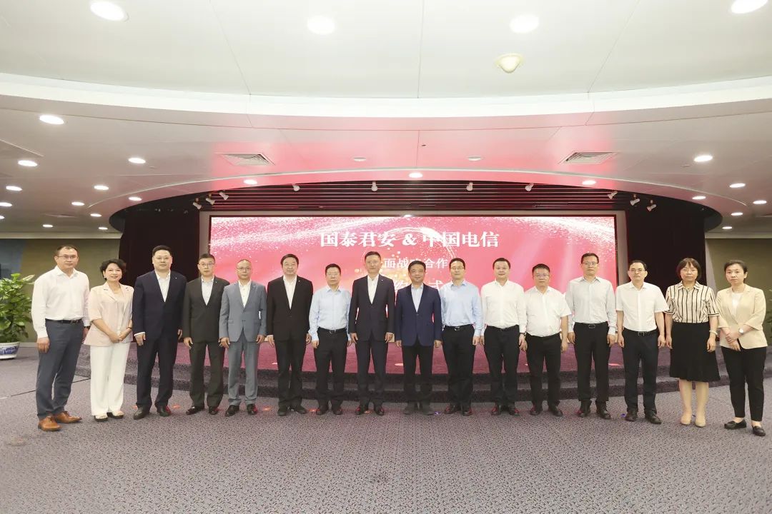 8月18日,国泰君安与中国电信集团有限公司(简称“中国电信”)在北京举行战略合作签约仪式。中国电信党组副书记、总经理邵广禄,国泰君安党委书记、董事长贺青出席签约仪式。中国电信副总经理夏冰,国泰君安副总裁罗东原代表双方签署战略合作协议。中国电信政企信息服务事业群总经理潘天舒、上海电信总经理龚勃、天翼电子商务总经理罗来峰、天翼云科技总经理胡志强,国泰君安首席信息官俞枫及政策研究院、战略客户部、北京分公司、品牌中心、投资银行部相关负责人共同见证签约。