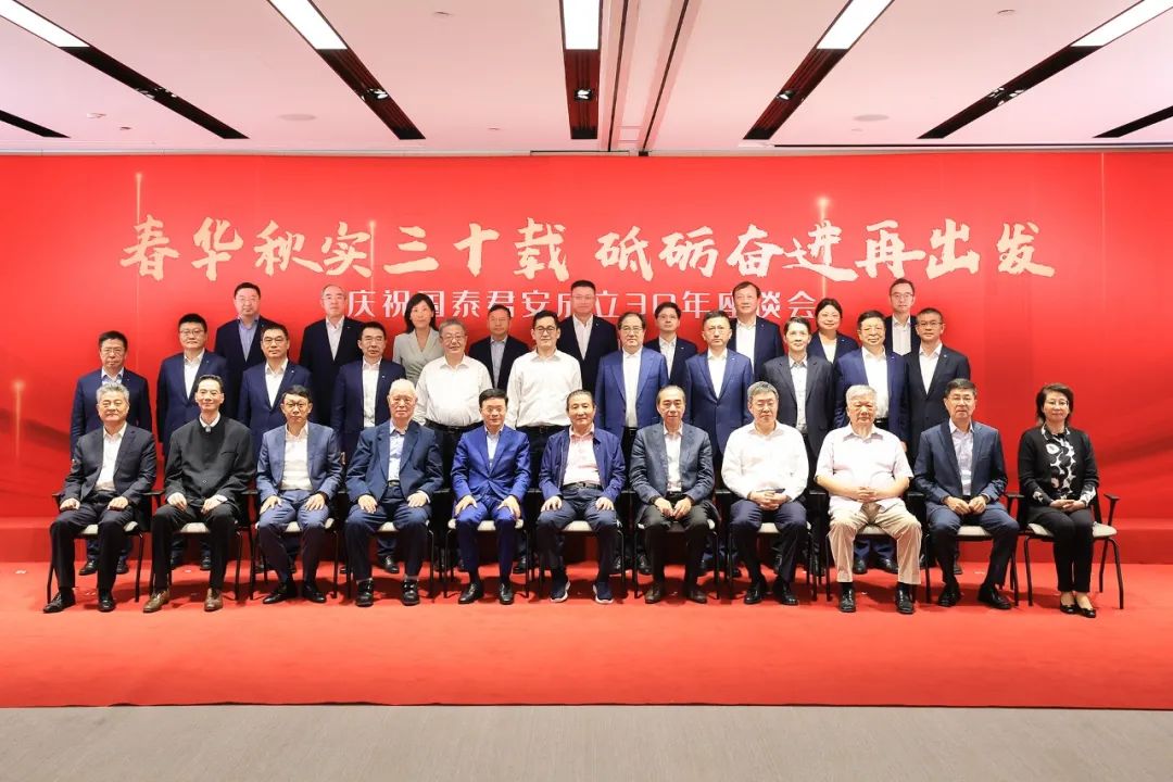 9月17日,庆祝国泰君安成立30年座谈会在沪召开。上海市国资委党委书记、主任白廷辉,上海市政协常委、经济和金融委员会主任严旭,静安区委书记于勇,静安区委副书记、区长王华,上海国际集团党委书记、董事长俞北华,上海市证券同业公会秘书长俞峰,国泰君安老领导金建栋、祝幼一、万建华、杨德红、胡泰利、陈步林、陈耿、王益民、商洪波、李中宁、朱宁等出席会议;国泰君安党委书记、董事长贺青主持会议;国泰君安总裁王松等其他公司现任领导班子和高管成员,以及部分员工代表现场参会。