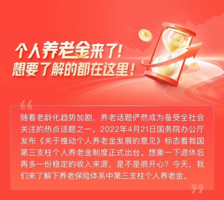 今年4月,《关于推动个人养老金发展的意见》(下称《意见》)发布。《意见》明确,个人养老金资金账户资金可用于购买符合规定的银行理财、储蓄存款、商业养老保险、公募基金等金融产品。我司也一直积极推动和宣传个人养老金业务。