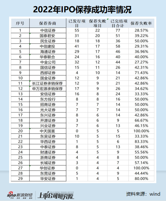 保荐券商排名:中天国富、华创证券等保荐失败率高达100%