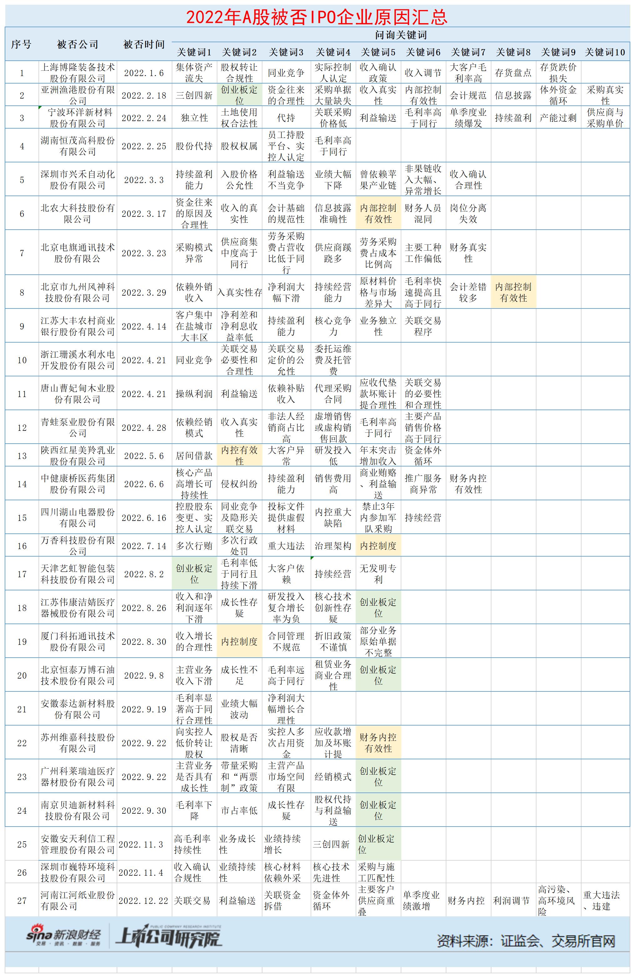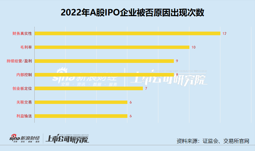 综上,财务真实性、创业板定位、内部控制、持续经营/盈利能力是2022年IPO企业被否四大主因,与关联交易、利益输送问题构成六大被否主因。