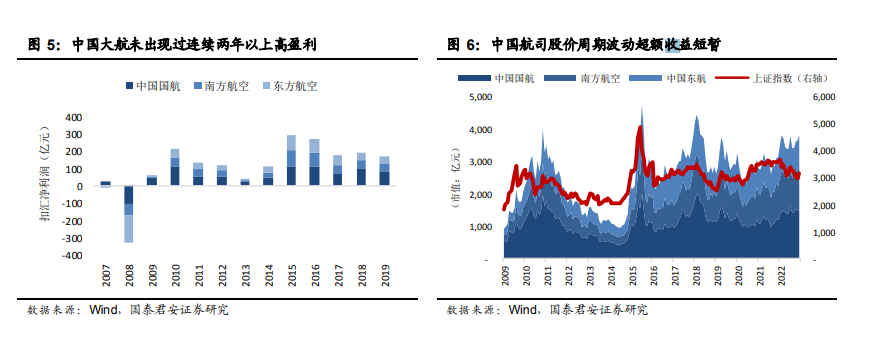 过去二十年,中国航空业从未出现过连续两年以上的高盈利,2010年与2015年盈利大年均在次年便业绩回落,股票估值始终反映强周期属性。