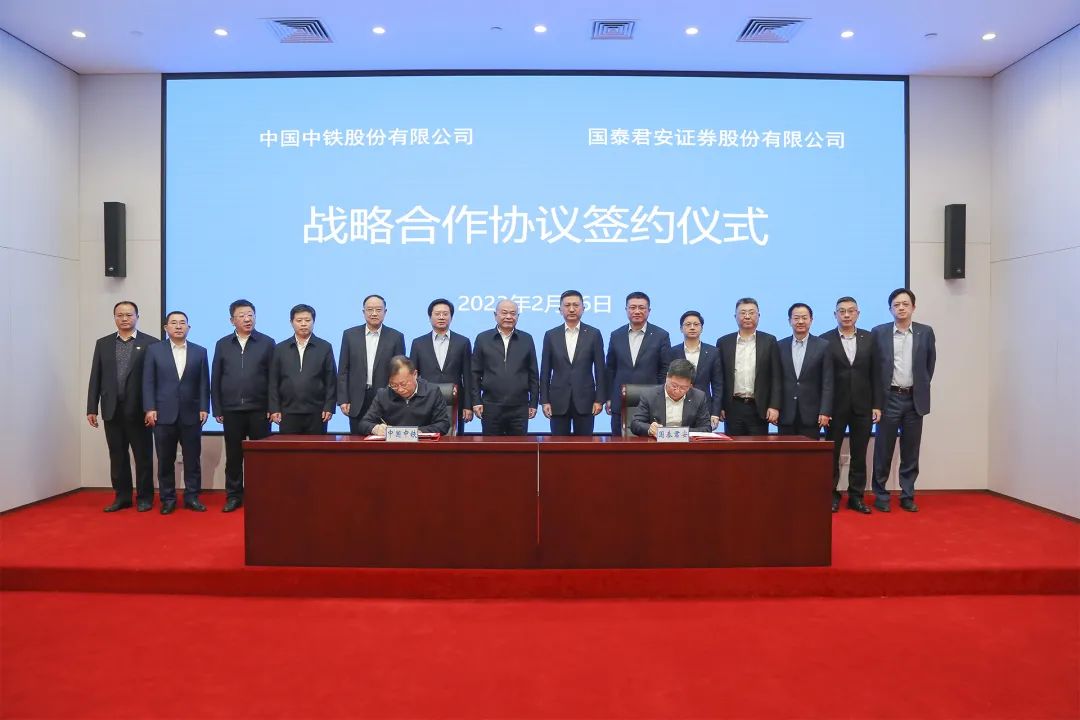 2月16日,国泰君安与中国中铁股份有限公司(简称“中国中铁”)举行战略合作签约仪式。中国中铁党委书记、董事长陈云,国泰君安党委书记、董事长贺青出席签约仪式;中国中铁副总裁任鸿鹏,国泰君安副总裁罗东原代表双方签署战略合作协议;中国中铁总裁助理耿树标,国泰君安副总裁聂小刚、李俊杰等共同见证签约。