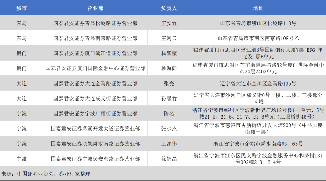 本次拟新设分公司的厦门和青岛,同样是计划单列市。国泰君安在这两地均各有两家营业部。本次筹建的分公司,是否会由营业部升级而来,目前未有更多选项。