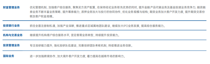 国泰君安2022年上半年报中表示,以重点业务、重点区域、重要子公司高质量发展为抓手,加快在大湾区、长三角和京津冀等重点区域实现跨越式发展,努力实现第一个三年“打基础、补短板”的战略任务。