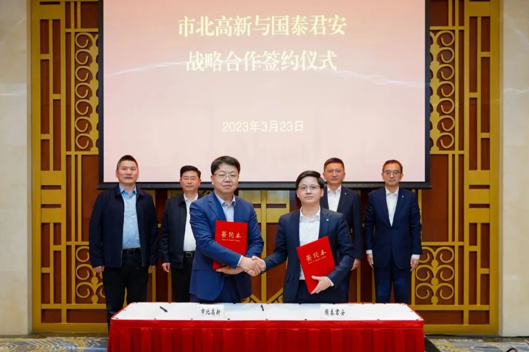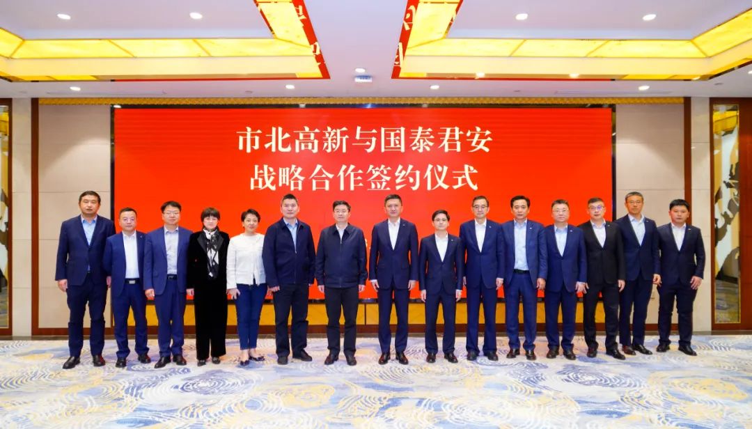 为进一步深化市北高新“基地+基金”双轮驱动发展战略,实现“科技-产业-金融”良性循环,3月23日,市北高新与国泰君安举行战略合作签约仪式。静安区委书记于勇,国泰君安党委书记、董事长贺青,静安区副区长张军出席签约仪式,市北高新集团党委书记、董事长罗岚,市北高新集团党委副书记、总裁陈军参加签约仪式,区委办、区金融办、市北高新集团、国泰君安相关负责同志共同见证签约。