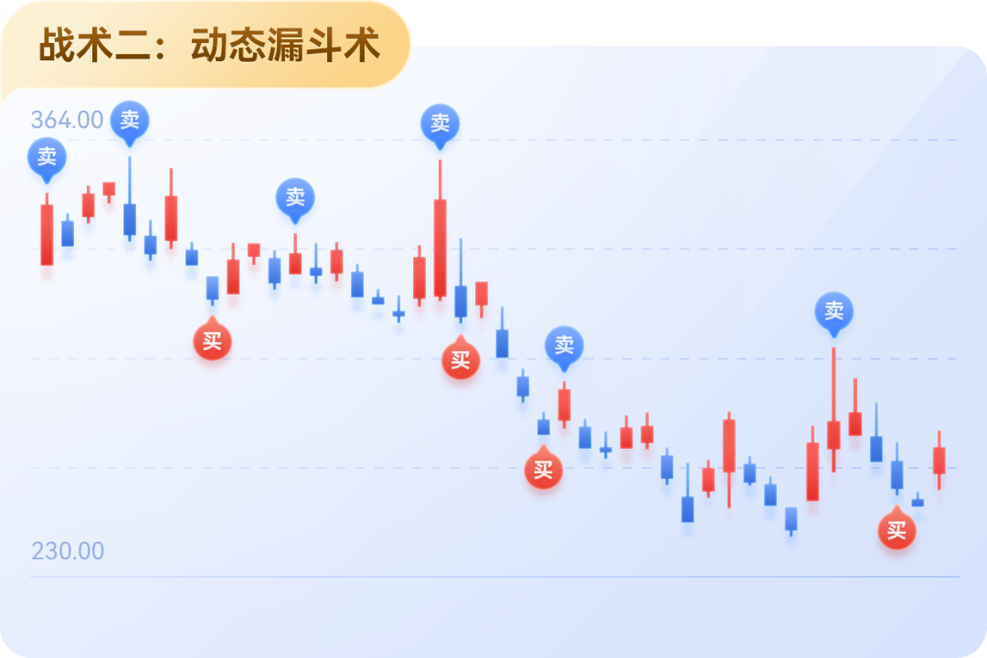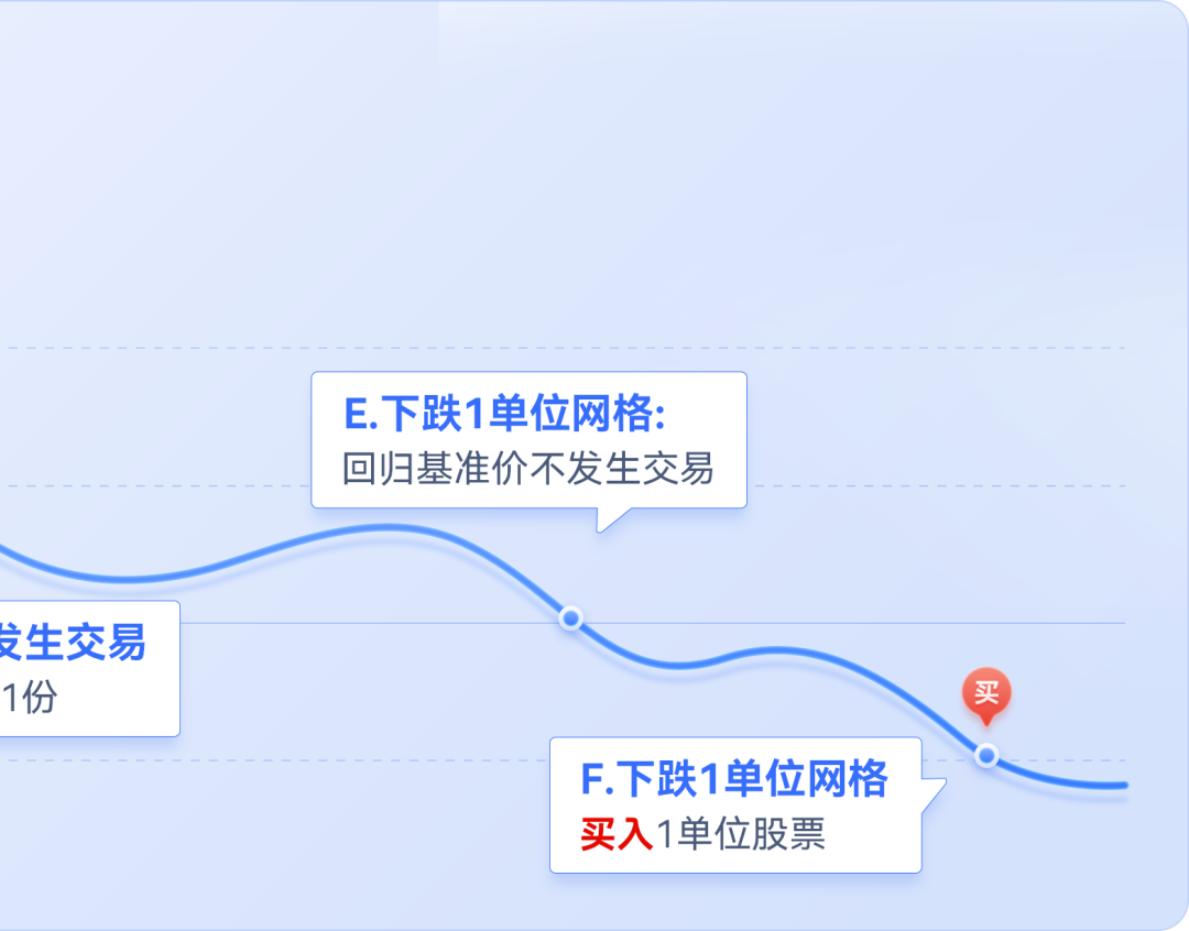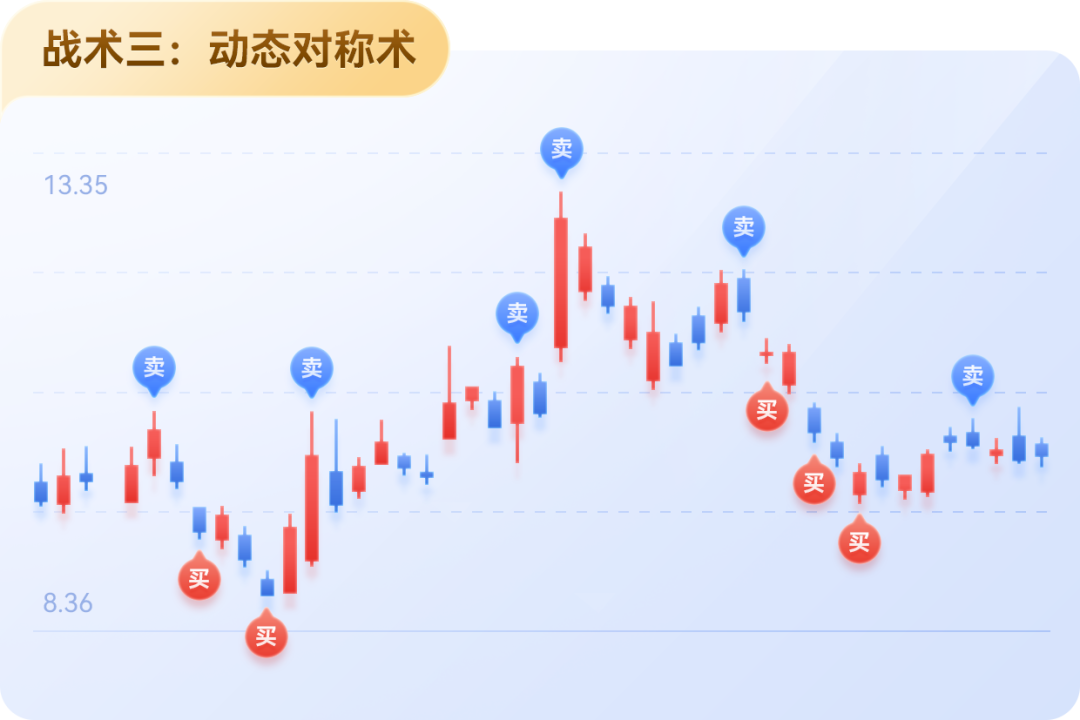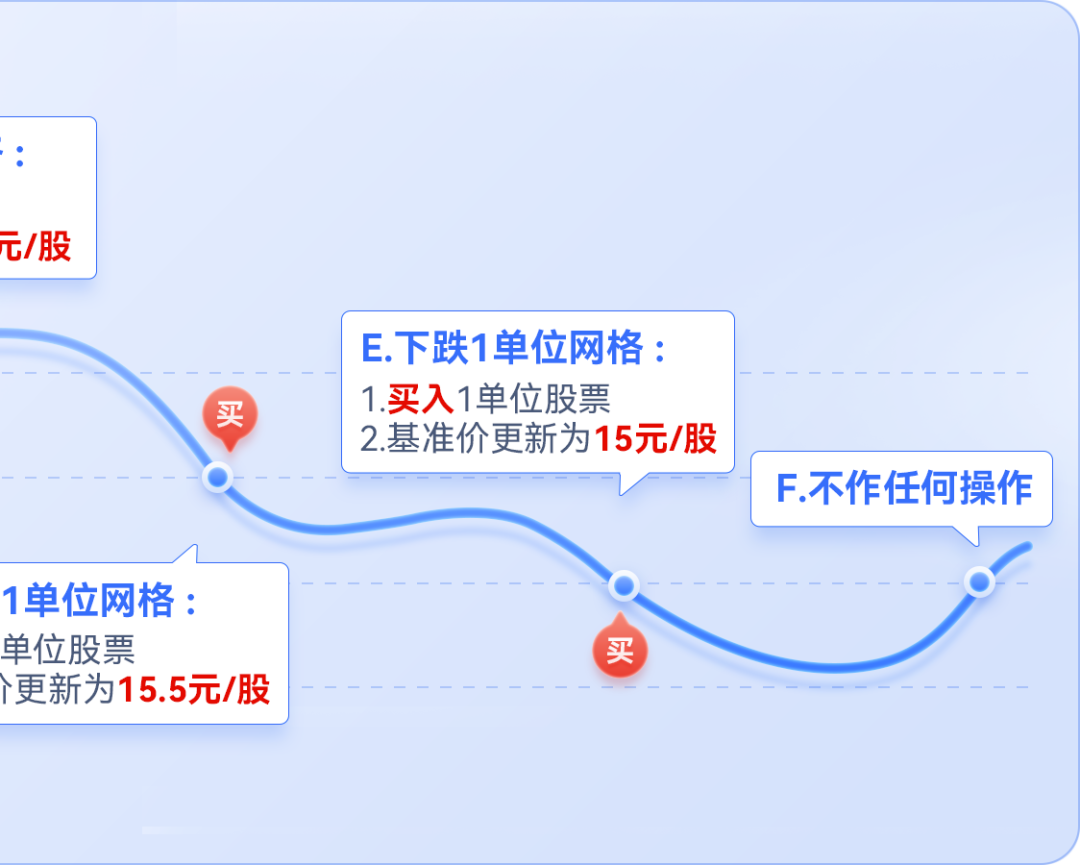 在基准价上下设定一系列目标价格,股价下跌触及目标价格时分批买入,上涨触及目标价格时分批卖出,基准价不会因为成交而发生更新。