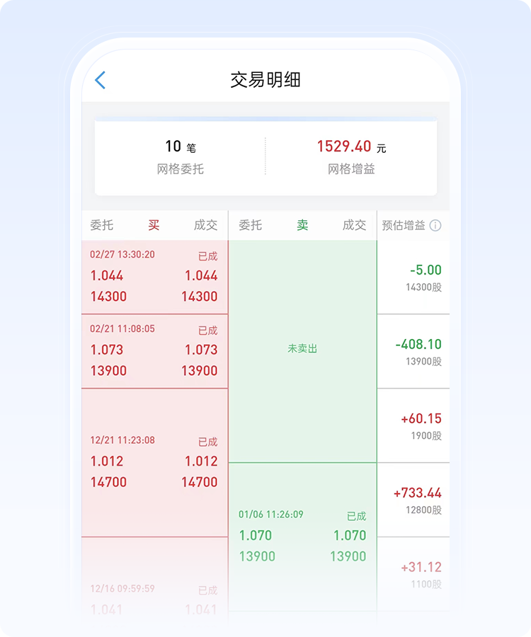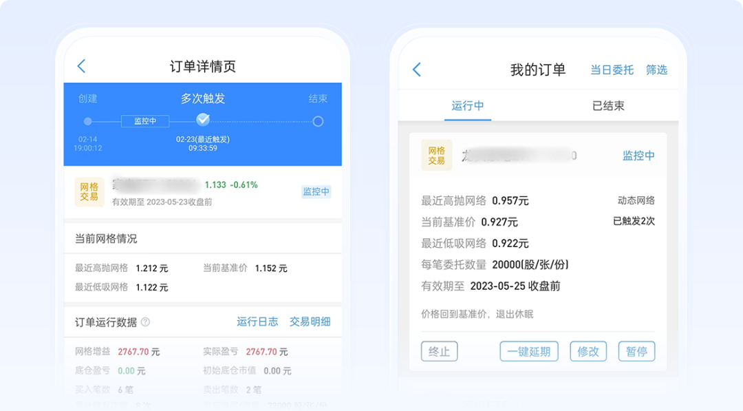 网格交易订单详情页全新推出订单生命周期跟踪展示,支持暂停、修改、一键延期等实用功能,助力投资复盘一目了然。