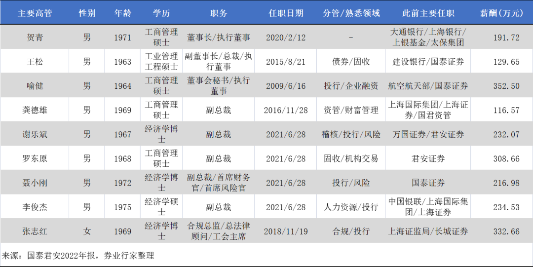 为了解国泰君安负责相关业务的主要高管,行家查看了2022年年报。