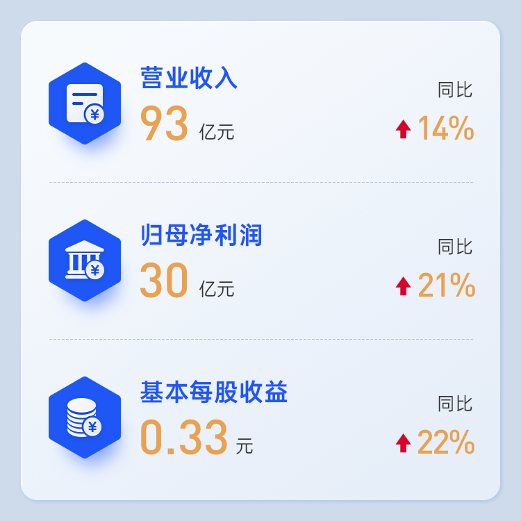4月28日,国泰君安发布2023年一季度报告。今年1至3月,公司主要业绩指标大幅增长,实现营业收入93亿元,同比增长14%,归母净利润30亿元,同比增长21%,基本每股收益0.33元,同比增长22%。