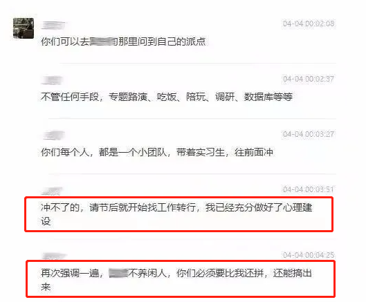 覃汉要求团队员工“冲业绩”部分群聊记录图源:网络