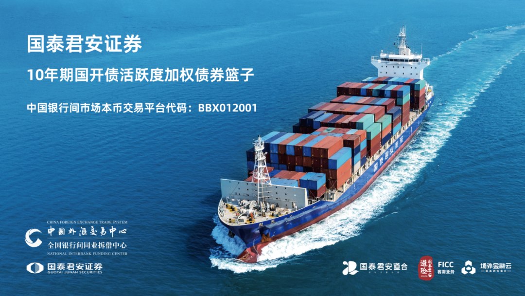 国泰君安-债券篮子可在中国银行间市场本币交易平台查看并交易,代码为BBX012001,交易单位为两千万(面值),本次国泰君安-债券篮子包含3只最新国开债,每只债券的权重根据活跃程度进行调整。最活跃券面值权重为70%,次活跃券面值权重为20%,次次活跃券面值权重为10%。国泰君安-债券篮子根据3只最新国开债发行量、连续10个工作日成交笔数、成交量等因素综合分析3只活跃券的活跃程度,并根据活跃程度进行权重调整,避免新老券切换行情对十年关键期限活跃国开债的投资组合净值产生较大扰动。
