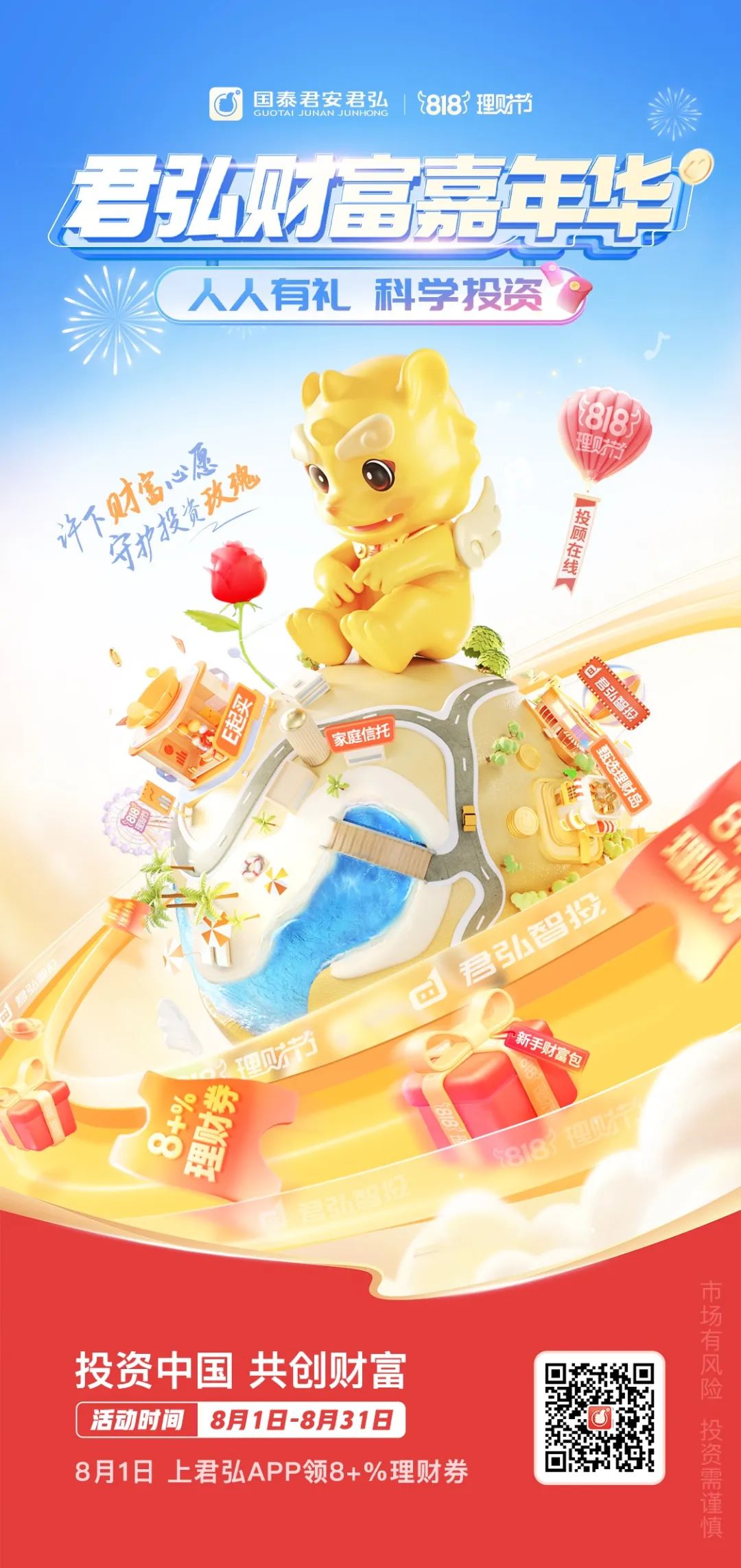 8月1日,国泰君安第七届818理财节正式开启,秉承“寓教于乐,科学理财”的理念,以专业服务增强客户获得感,践行数字化普惠金融服务,诚邀海量投资者“投资中国,共创财富,理财就来国泰君安818”。