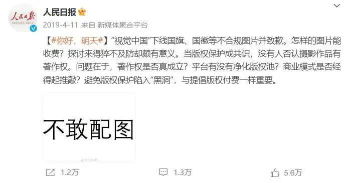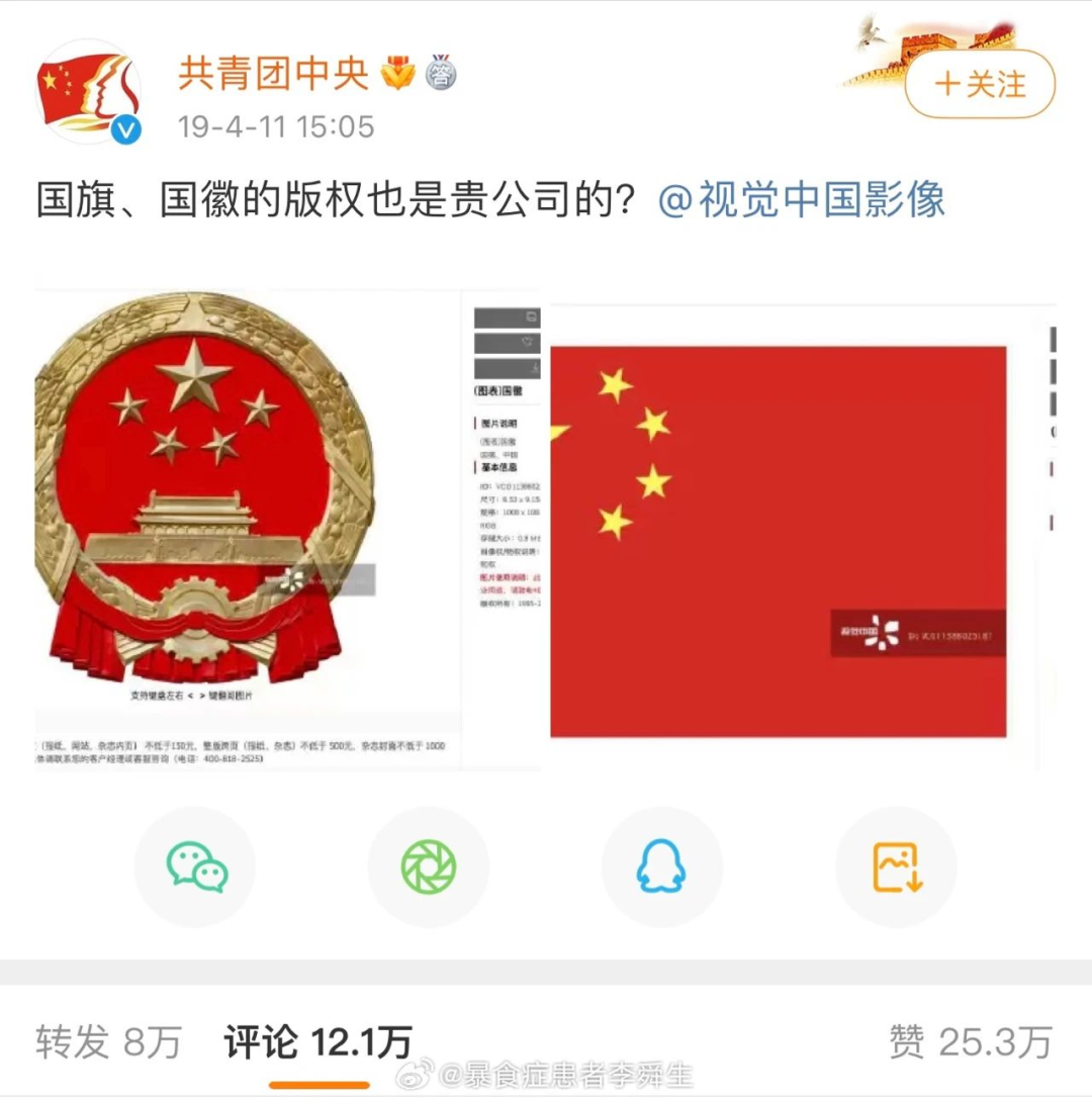 彼时,共青团中央曾质疑国旗国徽版权,人民日报官微表示“不敢配图”。
