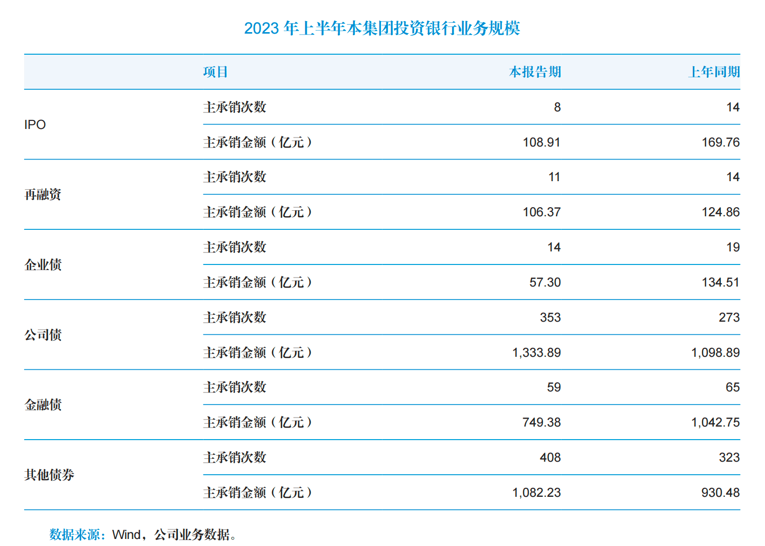 报告期内,国泰君安完成8单IPO项目,上年同期为14单,同比减少6单;主承销金额 108.91 亿元,上年同期为169.76亿元,同比下降 35.8%。