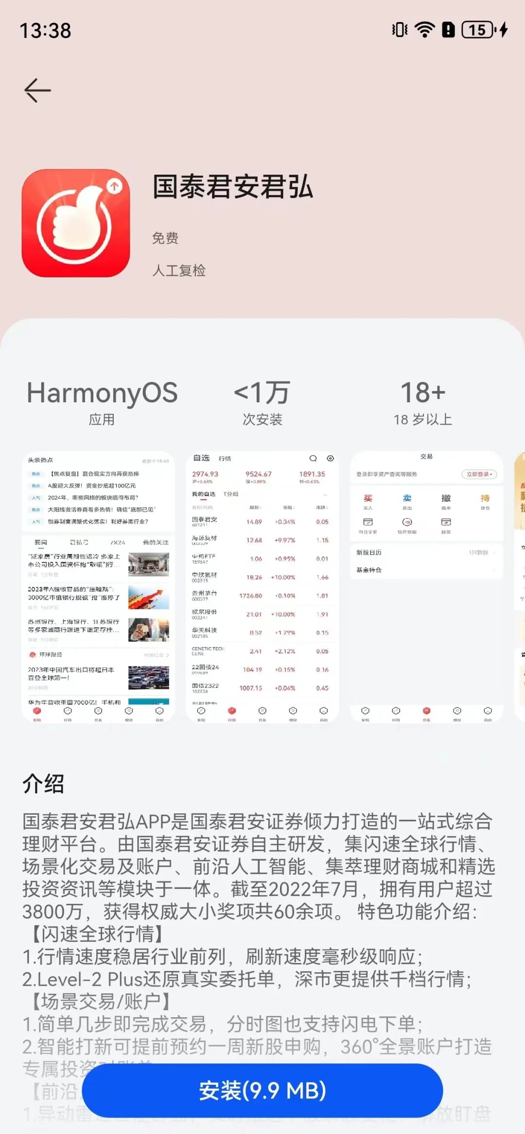 近日,国泰君安君弘APP成功在HarmonyOS Next系统华为应用商店上架,成为纯鸿蒙全应用市场首批上架的12款应用之一,同时也是金融领域首款成功上架的应用,充分展现了国泰君安在业务布局上的前瞻部署、在科技创新上的硬核实力、在推进IT基础设施国产化方面的坚定决心。