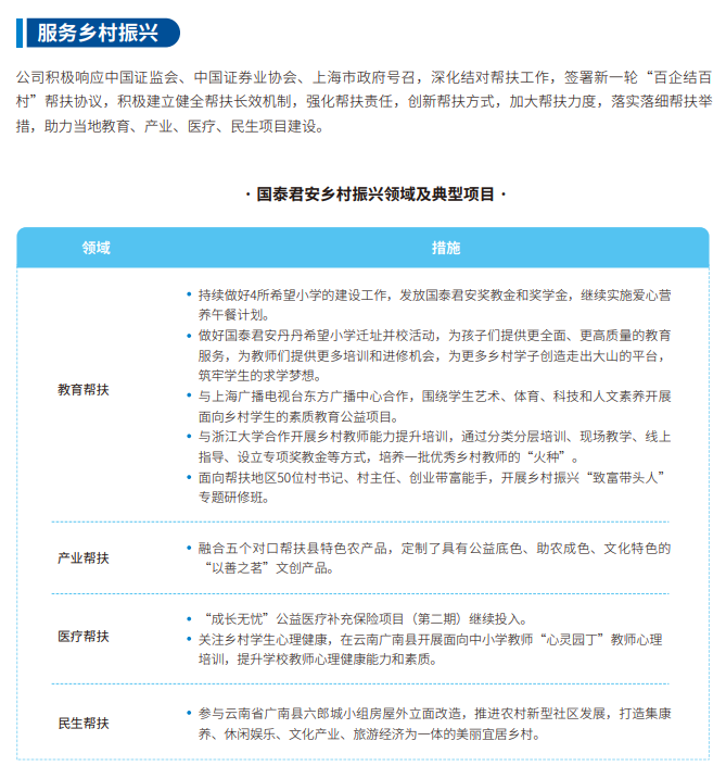 事实上,国泰君安在年度报告和社会责任报告中,多次提及尊师重教的行动。